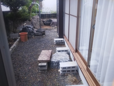 狭いスペースに設置との事でお庭の柵を外して障害物を